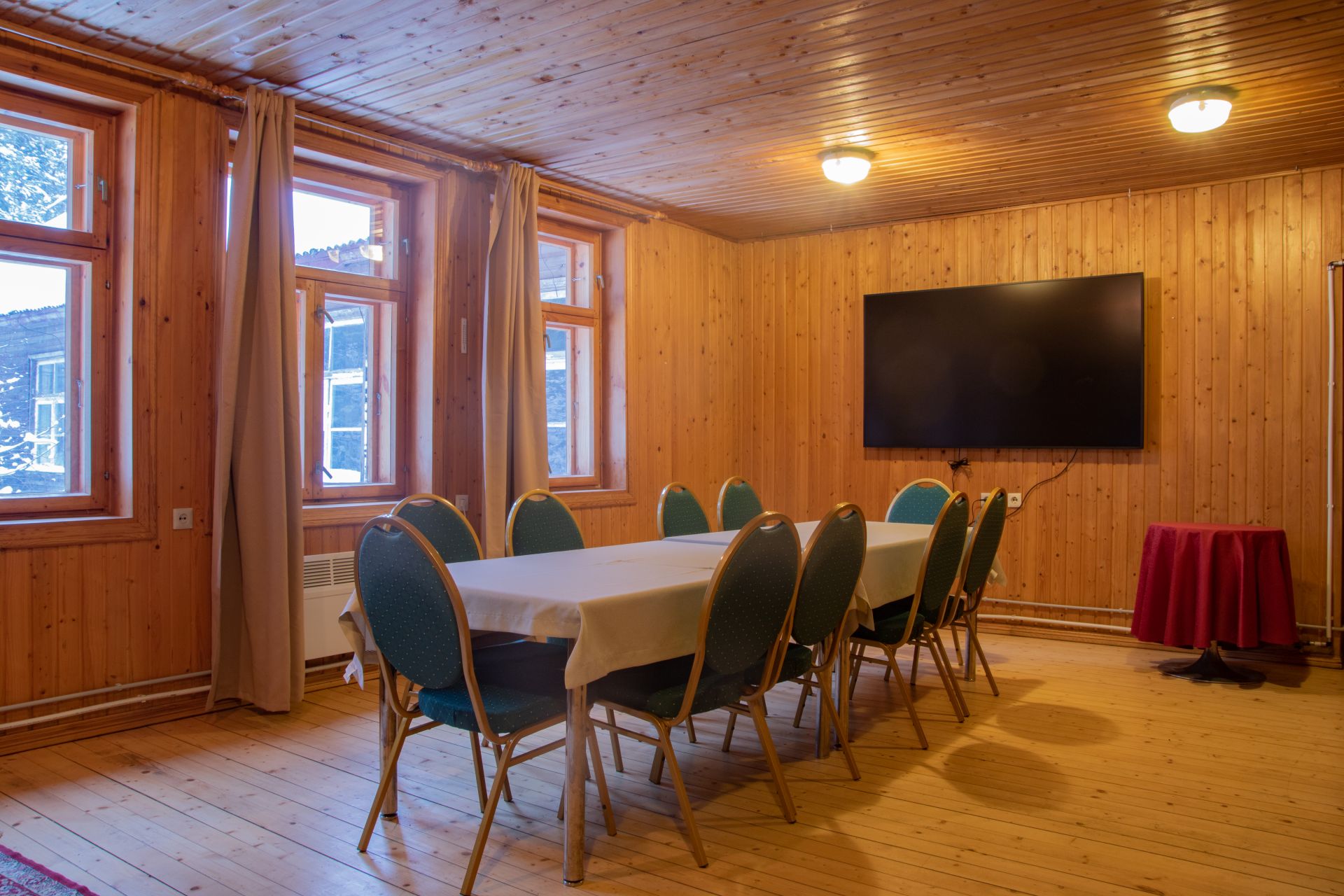 Saalis on kasutamiseks 75-tolline ekraan, mida saab kasutada esitlusteks või millest on hea vaadata spordiülekandeid või mängida sõpruskonnaga Kahooti.